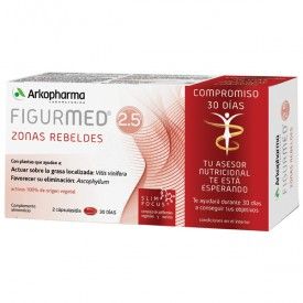 FIGURMED® ZONAS REBELDES es un complemento alimenticio a base de extractos de plantas 100% de origen vegetal. Asocia Ascophyllum (alga parda) y Vitis vinífera (uva) en su nuevo complejo Slim’ Focus®. Gracias a su acción específica ayuda a: