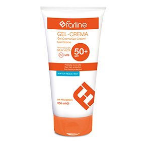 Gel-crema corporal, con protección solar muy alta SPF 50+.