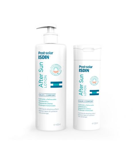 Isdin Aftersun Loción proporciona hidratación de la piel tras el baño solar. Fijación y prolongación del bronceado. Refresca la piel, alivia el ardor y enrojecimiento producidos por el sol. Hidrata, suaviza y devuelve a la piel su tersura natural. Fórmula testada bajo control dermatológico. Aplíquese especialmente sobre las zonas afectadas por el sol, después del baño solar, efectuando un suave masaje hasta su perfecta absorción. Para todo tipo de pieles.