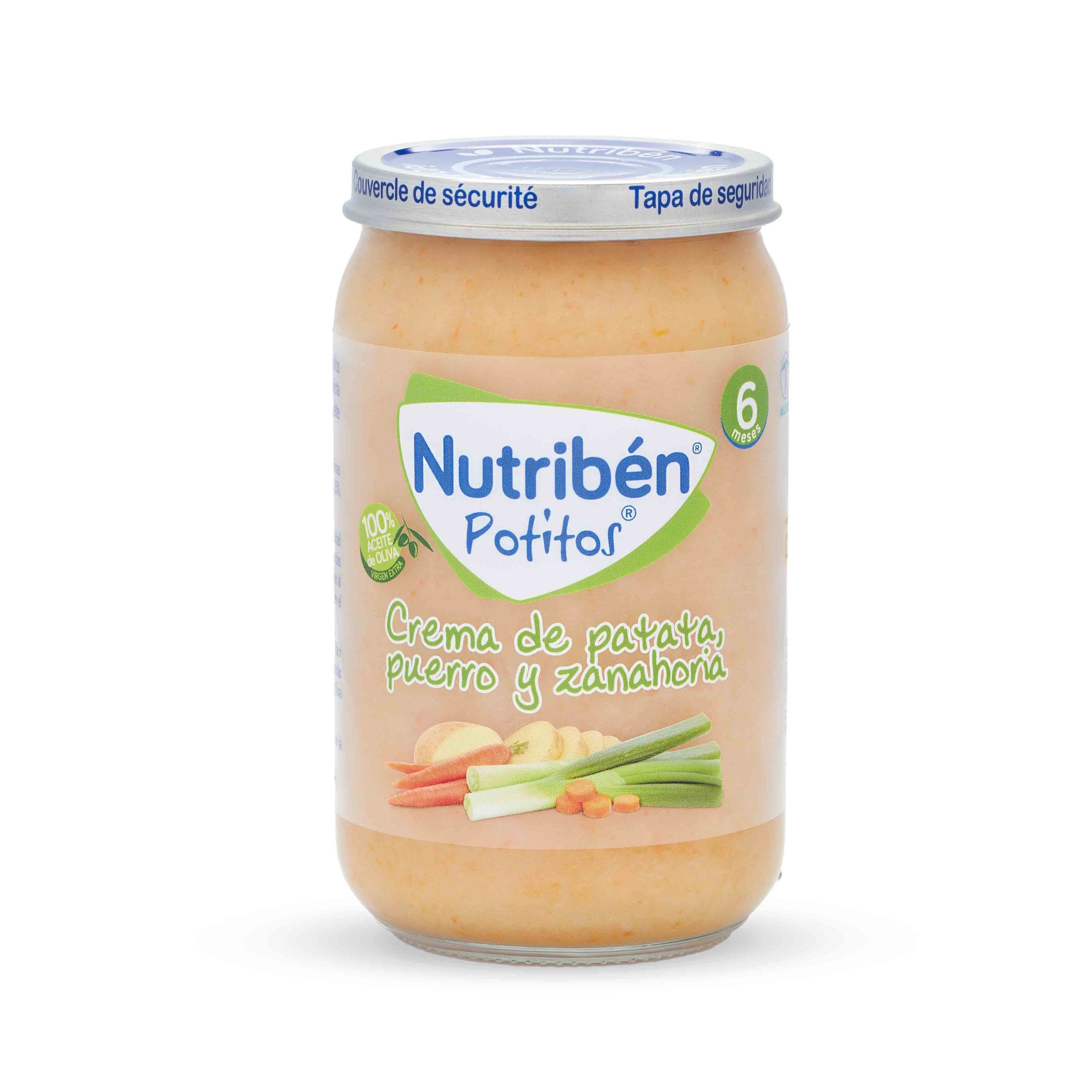 - Agua de coción - Patatas 41% - Puerros 10% - Zanahorias 5% - Maltodextrina - Harina de Arroz - Aceite de oliva virgen extra 2.5% - Almidón de maíz - Vitamina C