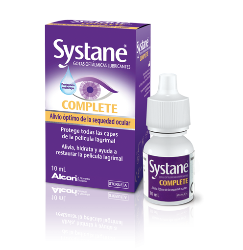 SYSTANE COMPLETE Gotas Oftálmicas Lubricantes es un tratamiento del ojo seco para el alivio temporal del ardor e irritación debidos a la sequedad ocular.